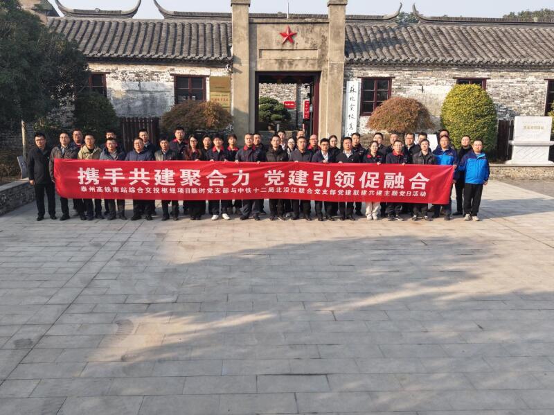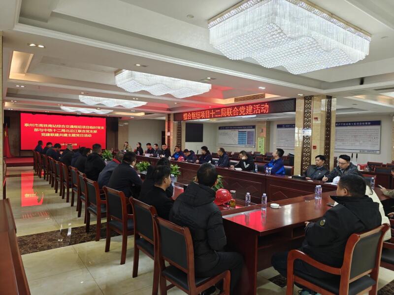 为深入贯彻新时代党的建设总要求,探索党建引领重大工程建设新路径,2025年11月22日,泰州高铁南站综合交通枢纽项目临时党支部与中铁十二局北沿江联合党支部共同策划并成功举办了“携手共建聚合力,党建引领促融合”党建联建共建主题党日活动。双方党员及骨干代表约50人参加了此次活动。