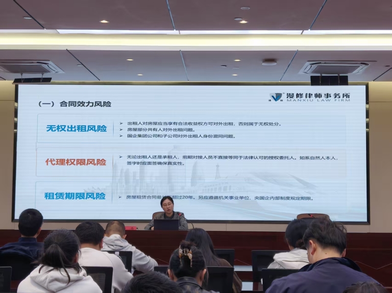 为进一步提升集团公司合同管理人员的专业水平与风险防控能力,10月24日下午,集团组织开展了以“合同审查与租赁纠纷”为主题的法律培训与案例研讨会,集团各部门、各板块60余名合同管理人员及房产租赁业务相关人员参与培训。