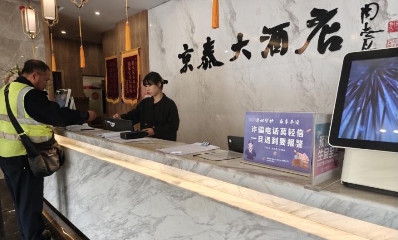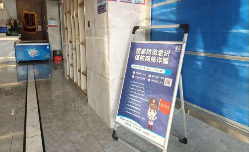 多元载体齐发力,营造浓厚法治氛围。利用LED滚动屏,循环播放“反电诈、护权益、保安全”等法治宣传语;在前台等显眼位置摆放反电信网络诈骗宣传册,便于客人随时取阅;在酒店大堂、电梯间等客人频繁经过的区域,张贴涵盖食品安全、消防安全、个人信息保护等内容的法治宣传海报,进一步加大知识普及力度。