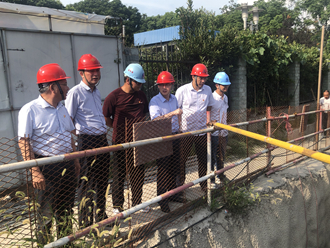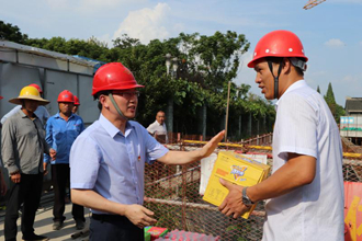 张志华、章斌一行查看了三水湾停车场的施工进度和安全生产情况,并仔细询问了现场人员配备、工人安全教育、夏季防暑降温措施等方面的落实工作,听取了三水湾临时党支部书记黄剑关于项目建设情况的汇报。并将清凉物品送到项目现场员工手中,代表集团公司感谢一线人员不畏酷暑、坚守岗位,为确保施工进度付出了辛勤劳动。并叮嘱项目部负责人结合实际,灵活调整作业时间,避免高温天气疲劳作业、超负荷作业,确保安全文明施工作业,确保员工人身健康安全。