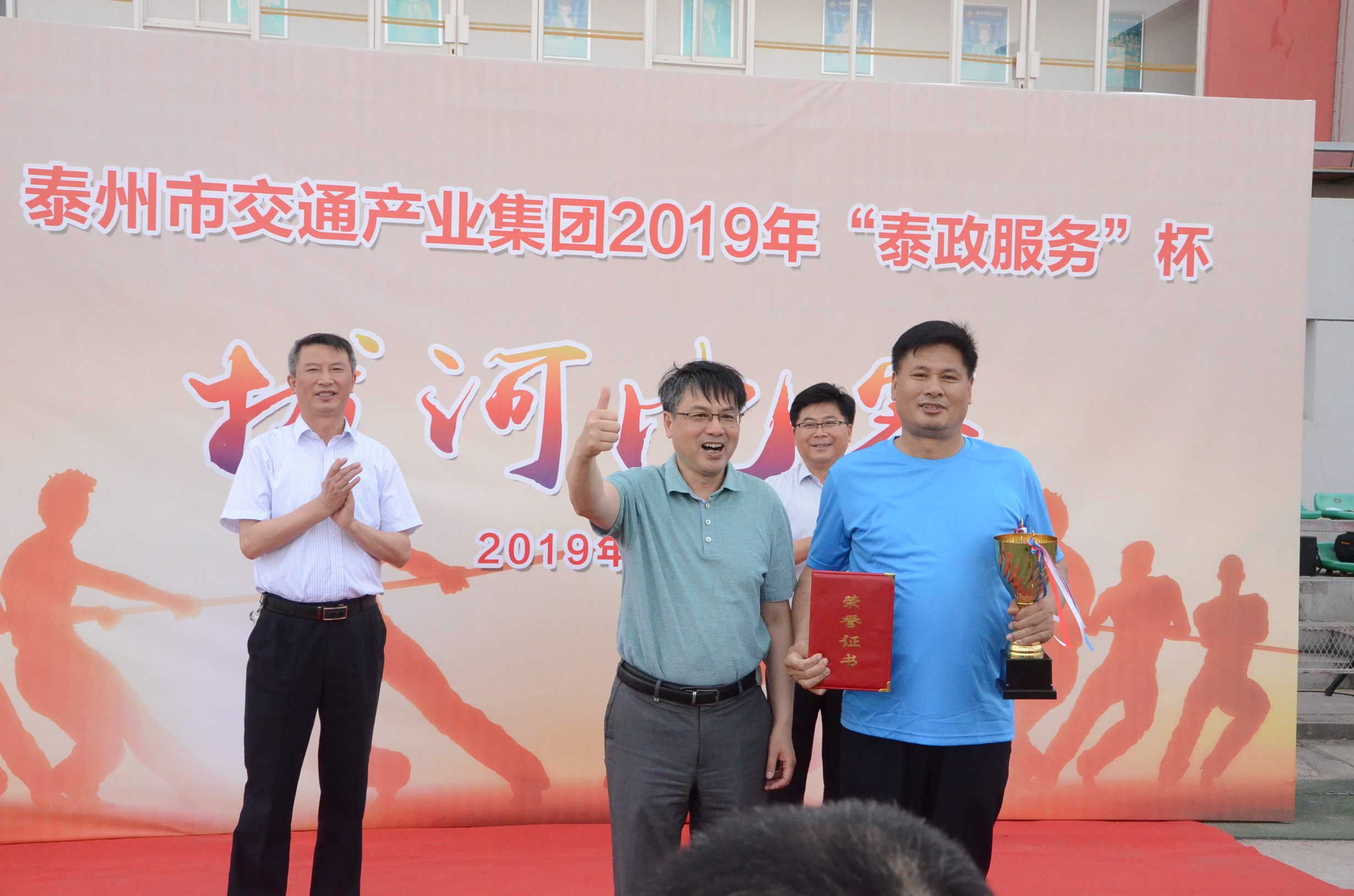 5月24日下午,交通产业集团在市体育中心田径场举办 “泰政服务杯”第二届职工拔河比赛,集团总经理刘广宏出席活动并致闭幕词。