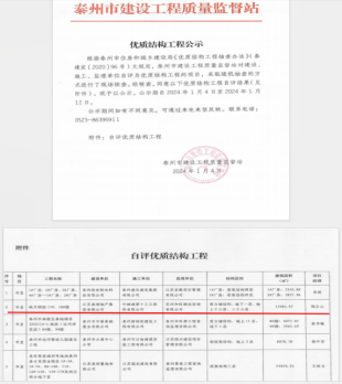 近日,经泰州市建设工程质量监督站的现场核查,由泰湖地产投资开发的桂语映月项目荣获市住建局“优质结构”工程奖。